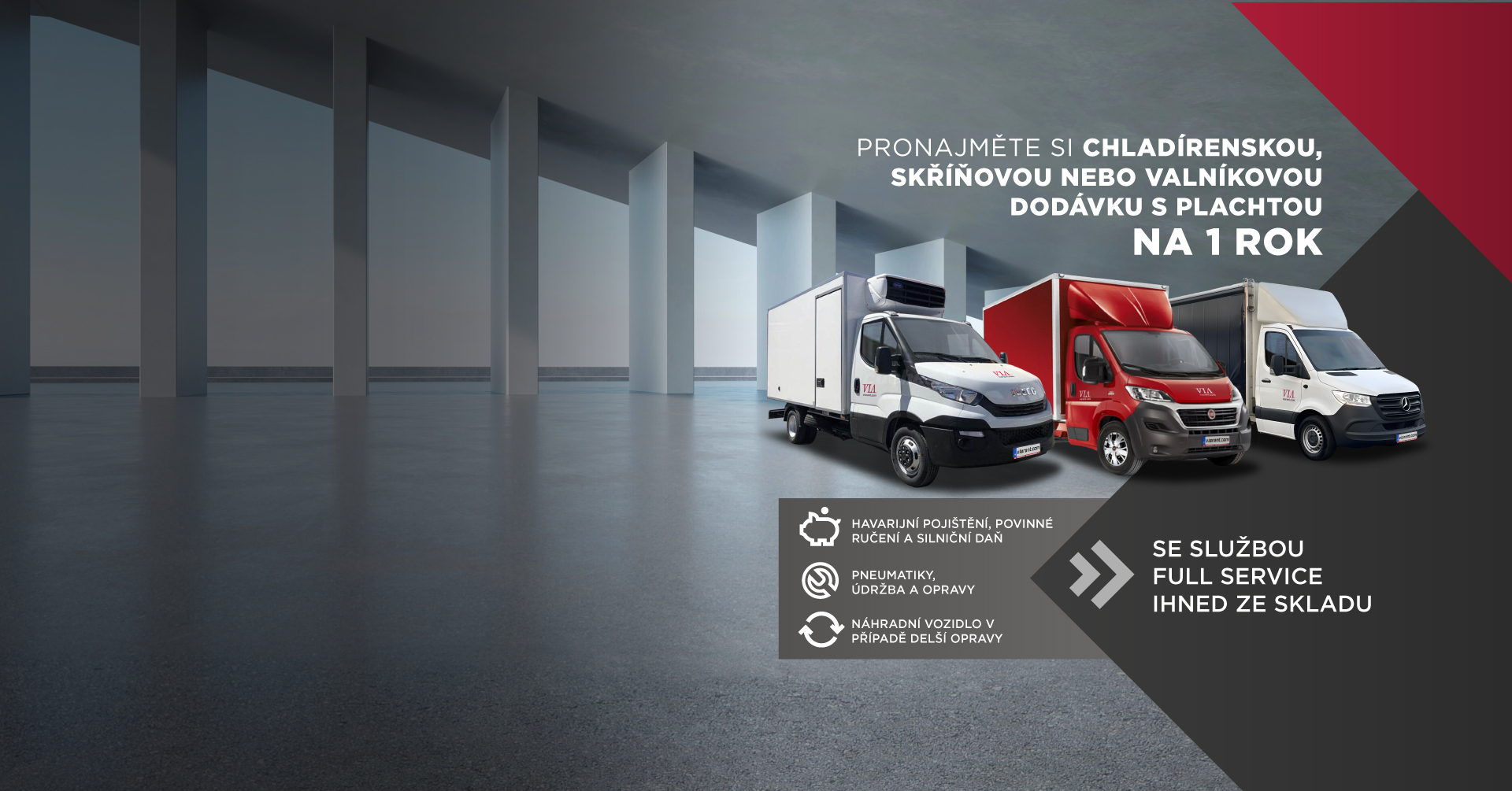 Pronajměte si chladírenskou, skříňovou nebo valníkovou dodávku s plachtou na 1 rok
