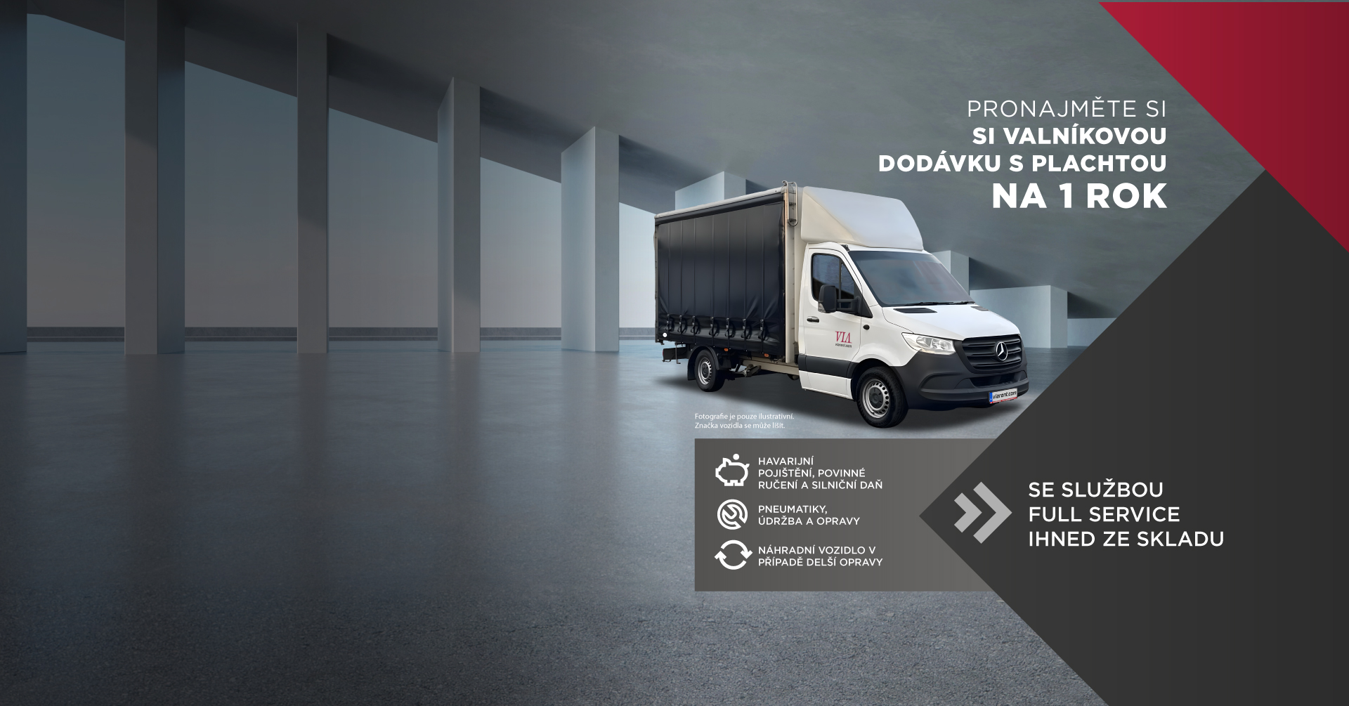 Upozorňujeme, že obrázky jsou pouze ilustrační a lehké nákladní automobily nabízené k pronájmu se mohou od vyobrazených lišit barvou, rokem výroby a výbavou. Další lehké nákladní vozy k pronájmu naleznete v naší kompletní nabídce.